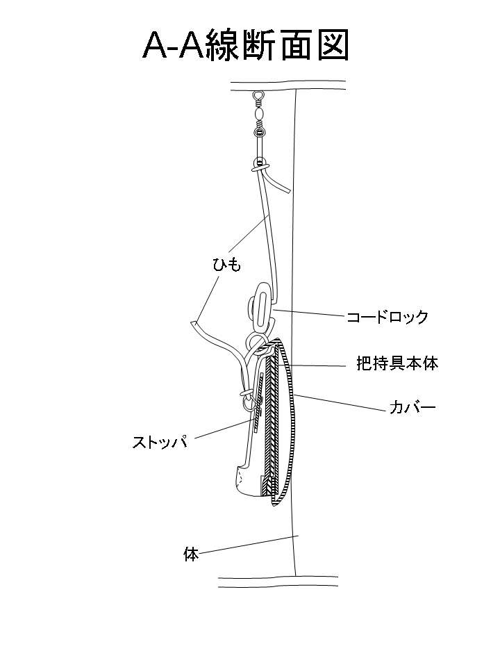画像をクリックすると拡大できます。図でも明らかなように、シャツ(不図示)にくるまれたストッパがくさび効果で把持される事がわかります